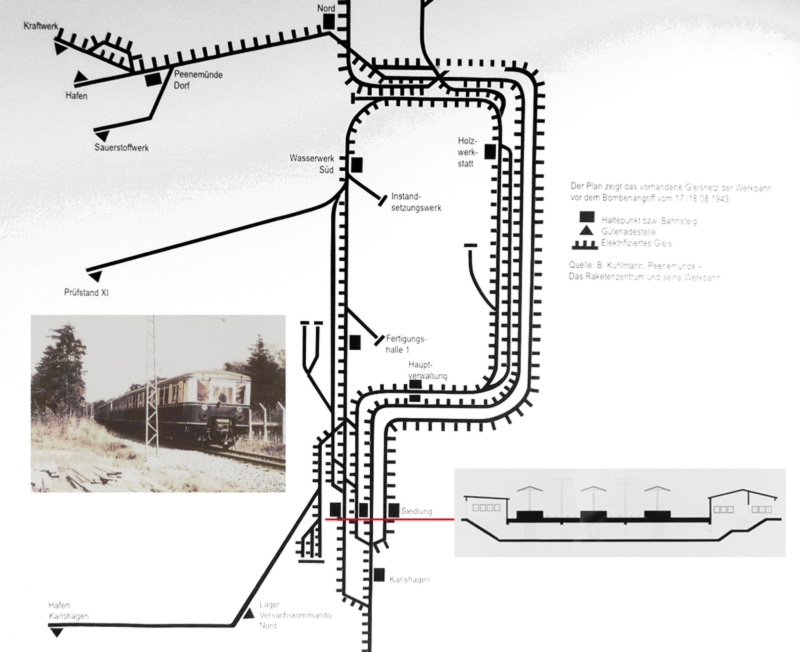 Der Eingang zur 'Siedlung' war übrigens dort, wo heute von der Peenemünder Straße die Ostseestraße zur Dünenresidenz abgeht. Und die Unterführung des Bahnhofs findet man, wenn man der 'Alten Peenemünder Straße' (links an der Pizzeria Stella di Lago vorbei) 500 Meter folgt.